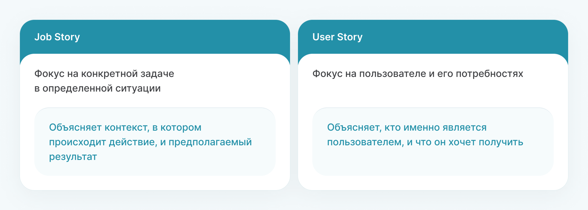 User Story более ориентирован на самого пользователя и его потребности. Инструмент помогает разработать функции, которые будут полезны для целевой аудитории.