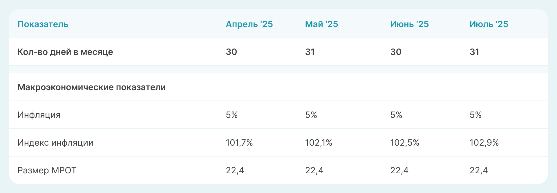 - Макроэкономические показатели: инфляция и размер МРОТ.