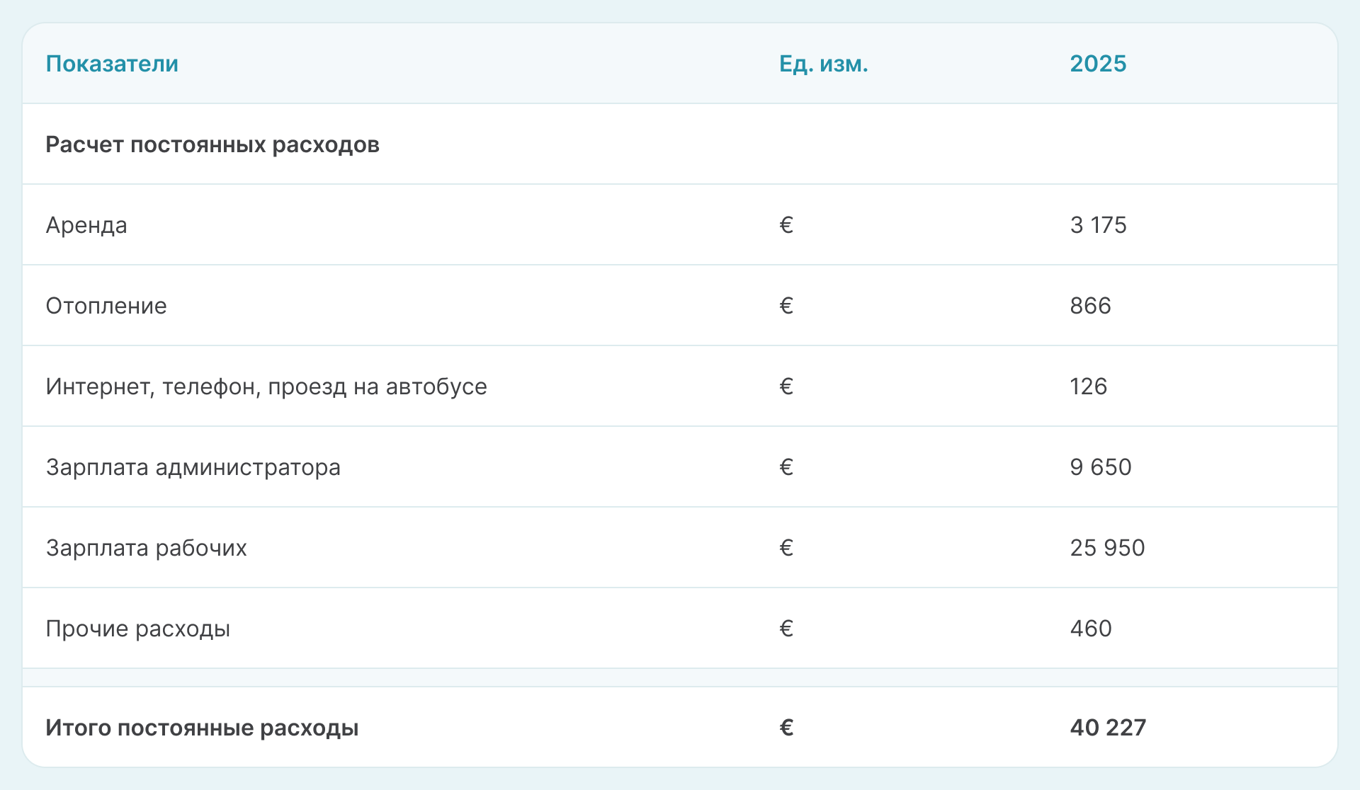 На следующей встрече финансовый эксперт ПланФакта запросила входные данные по бизнесу, чтобы произвести расчеты как прибыли, так и других финансовых показателей.