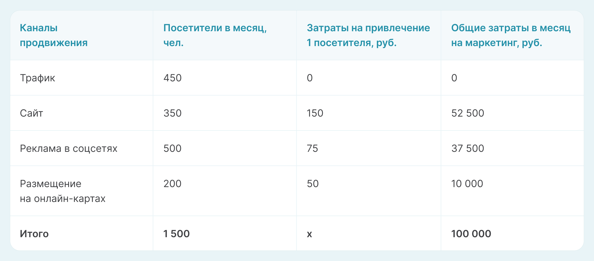 - Сайт — 350 посетителей по 150 рублей на человека.