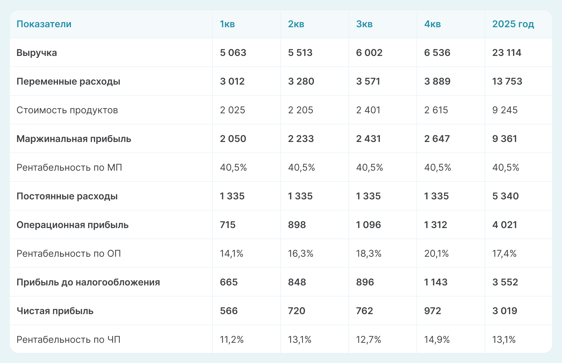 Рассмотрим на примере, как рассчитать финмодель кафе на 2025 год.