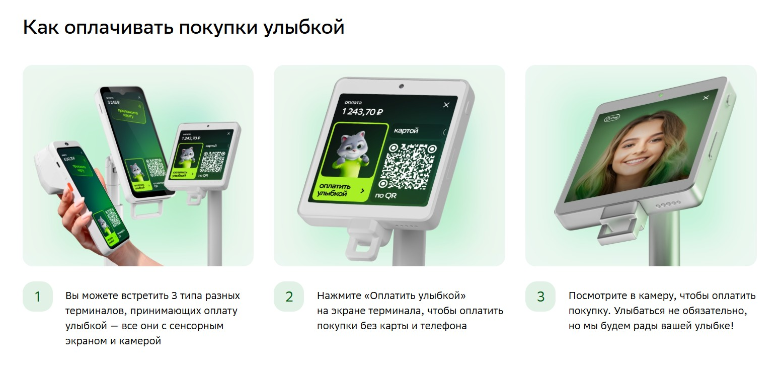 Например, терминалы с оплатой через улыбку клиента