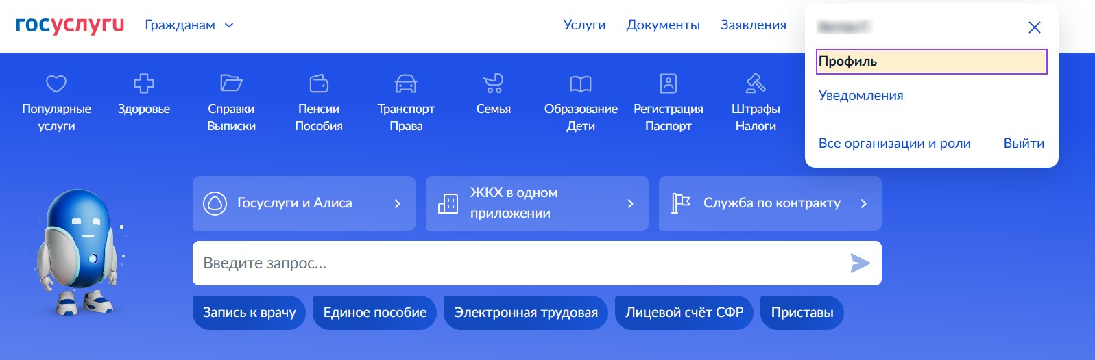 Для этого в личном кабинете нужно нажать на меню пользователя в правом верхнем углу.
