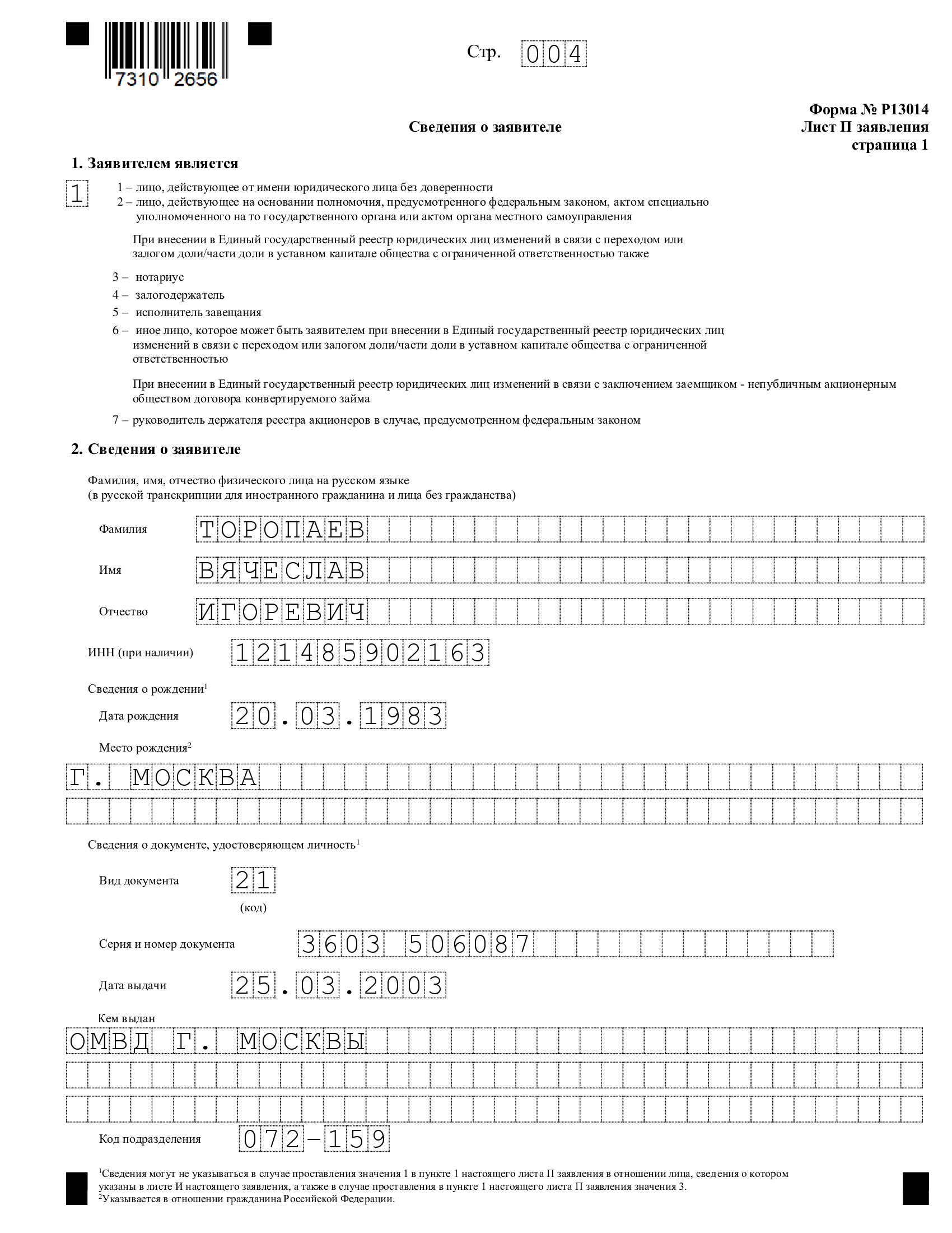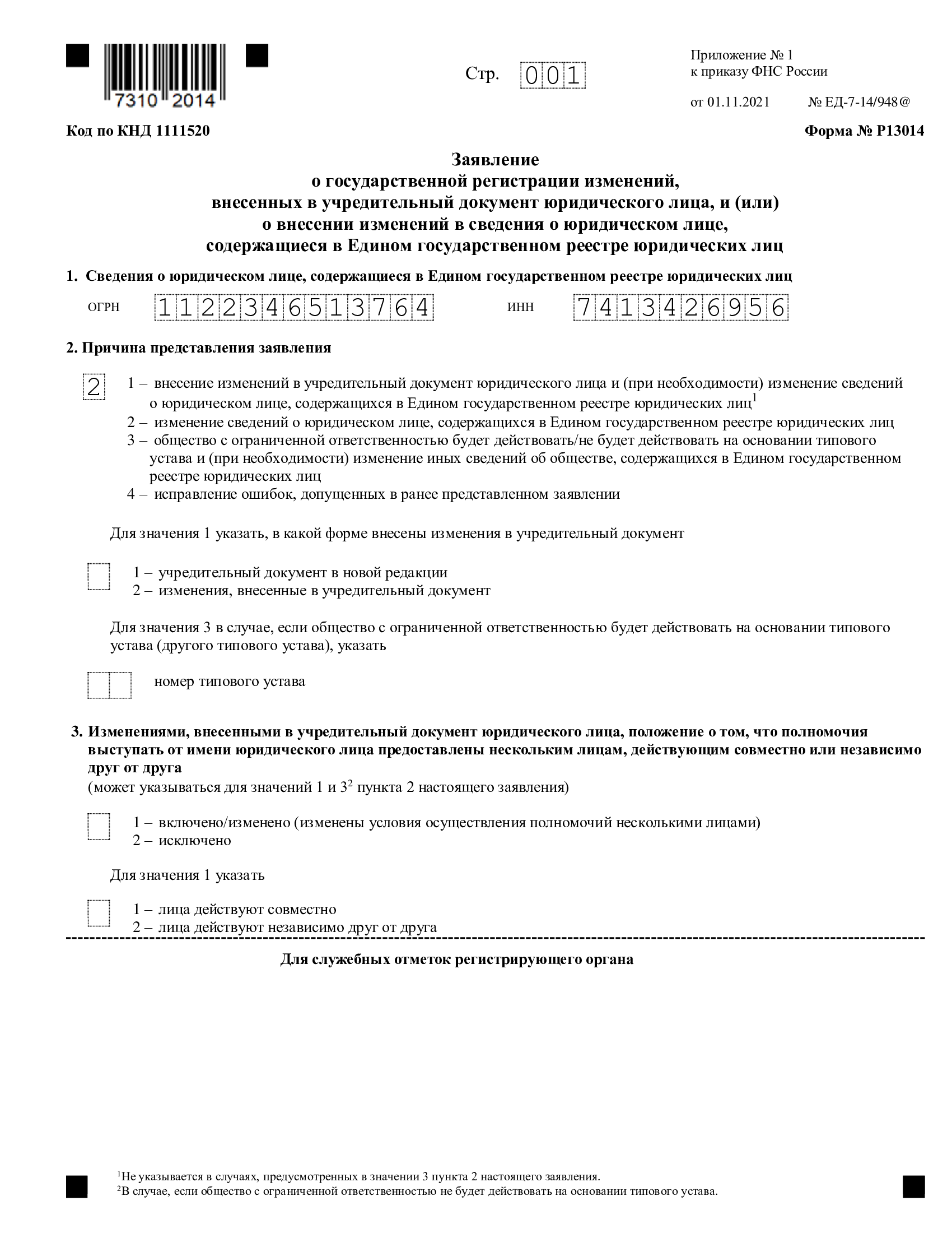 Внесение изменений в ЕГРЮЛ. Чтобы обновить данные в ЕГРЮЛ, нужно подать в налоговую заявление по форме Р13014, которая утверждена Форма заявления есть