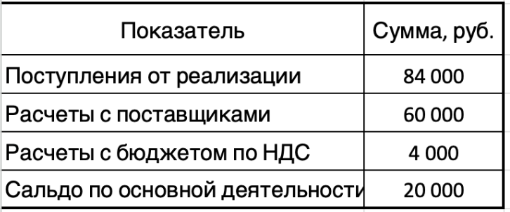ПР = (84 000 ₽ – 14 000 ₽) – (60 000 ₽ – 10 000 ₽) = 20 000 ₽.Если же мы посчитаем остаток денег на счете после сделки, то сумма будет больше: