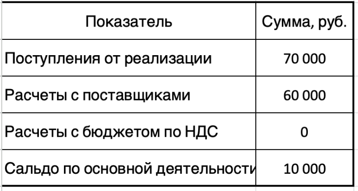 В БДДС и ДДС в данном случае нужно отражать поступления и выплаты в полном объеме. Строка «Расчеты с бюджетом по НДС» для условий нашего примера не понадобится. Но в общем случае она может пригодиться, например, если компания либо ИП исполняет обязанности налогового агента или закупает товары по импорту.