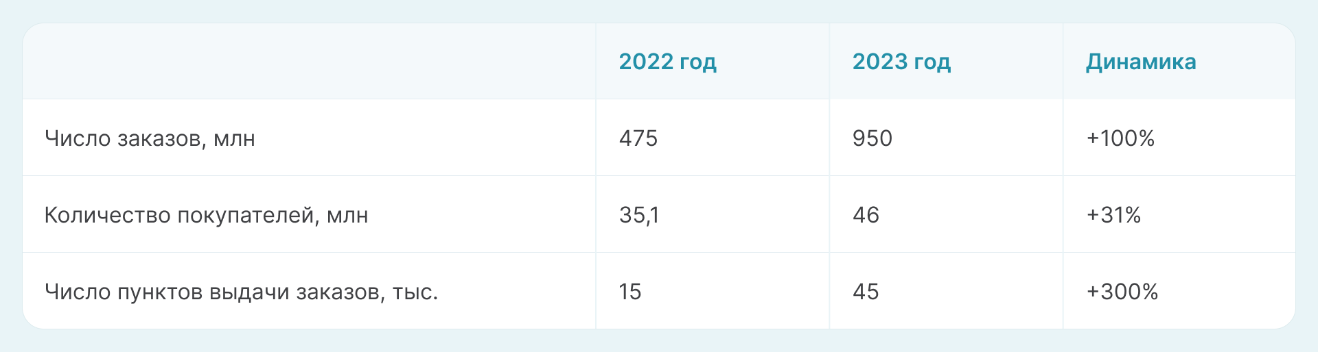 За первое полугодие 2024 года рост основных показателей Ozon по сравнению с этим же периодом 2023 года: