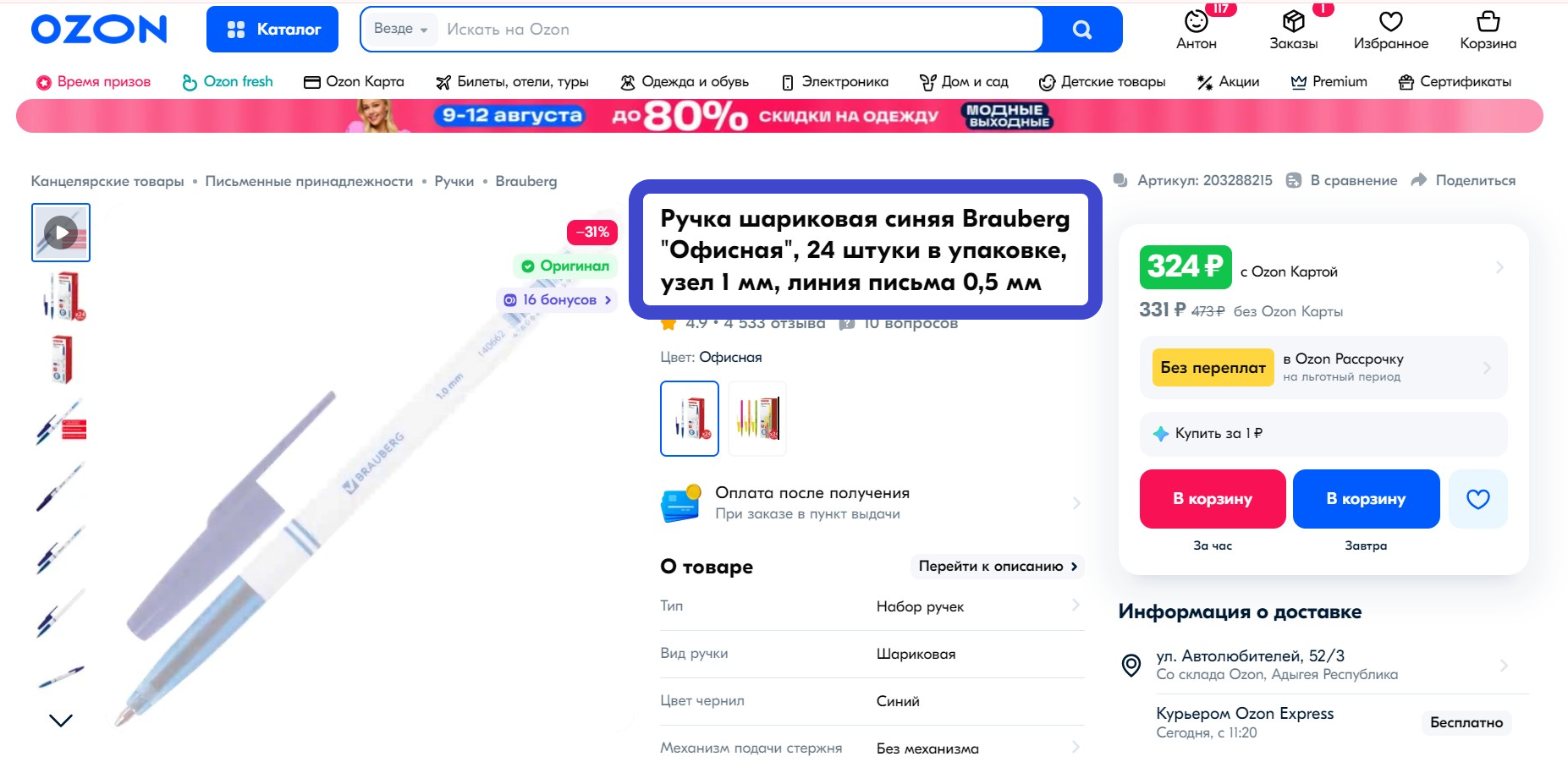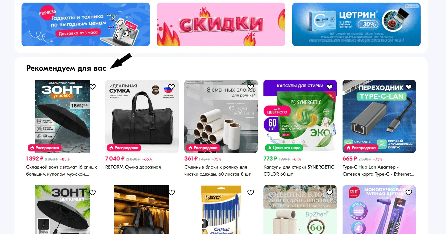 Опция, с которой можно разместить карточку товара на видных местах сайта маркетплейса, например, на рекомендательной полке главной страницы Ozon. Покупатель платит за клик по карточке продукта.