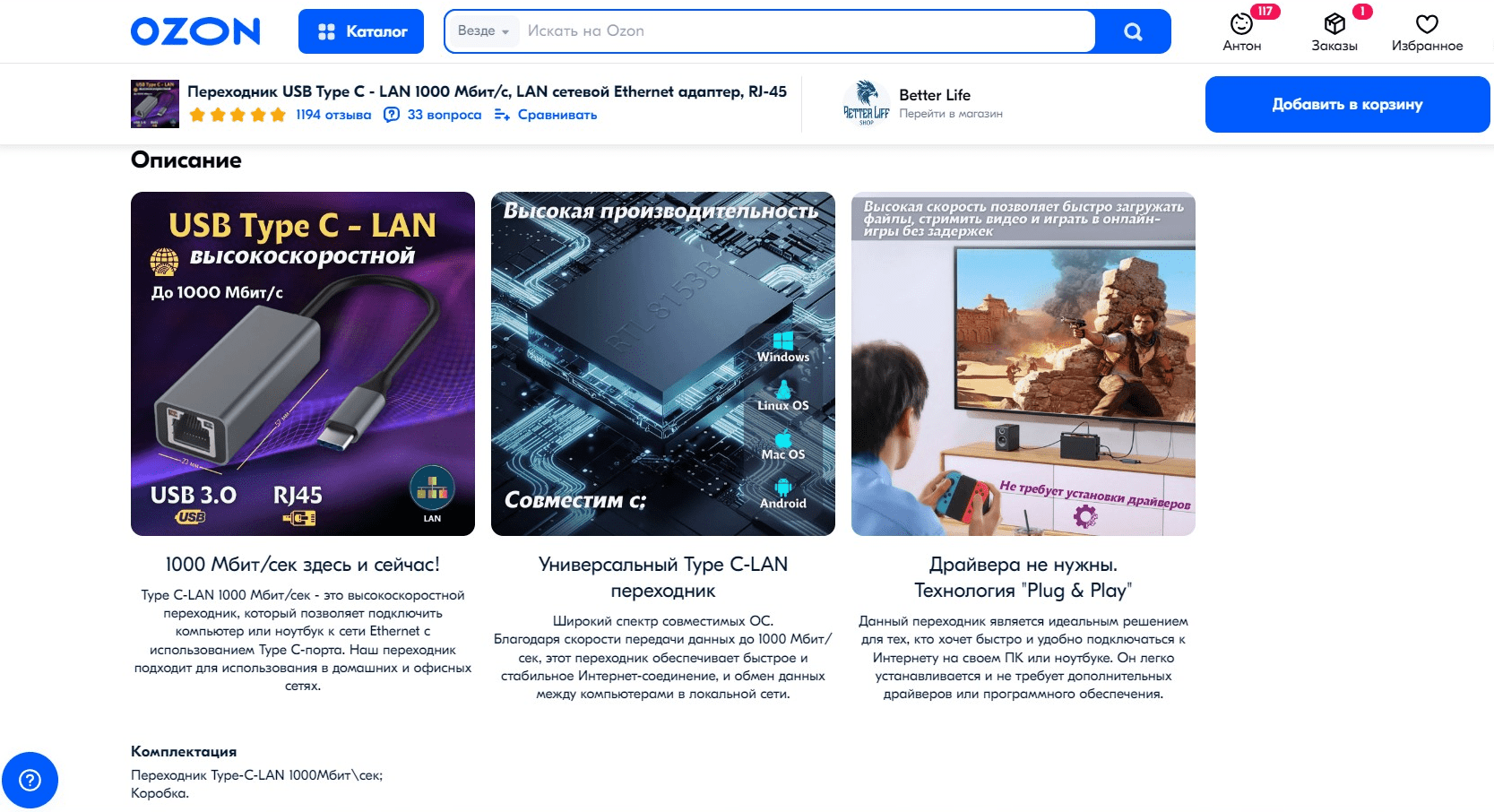 Описание и характеристики товара. В описании необходимо написать особенности и преимущества товара, а в характеристиках — все параметры, которые помогут клиенту узнать технические подробности о продукте.