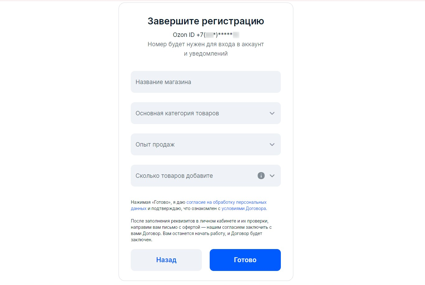 Зарегистрироваться на платформе нужно Во время оформления необходимо указать тип организации, вид деятельности, название магазина, категории и количество товаров для продажи.