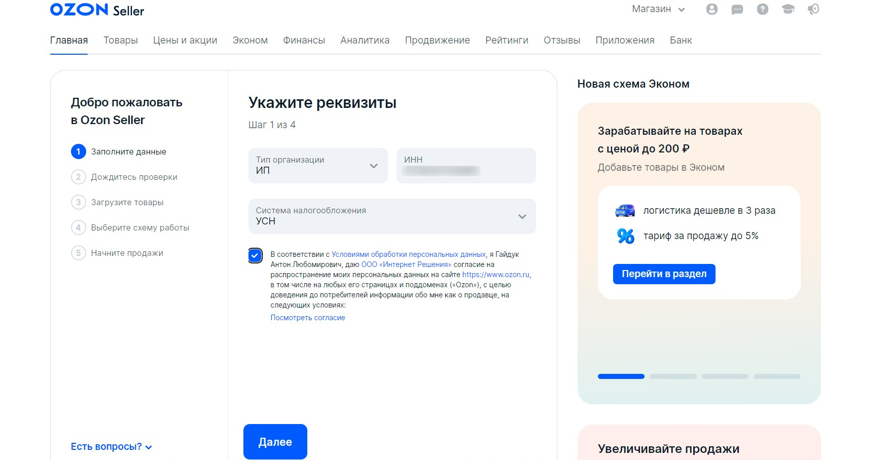 4. Как зарегистрировать бизнес на Ozon