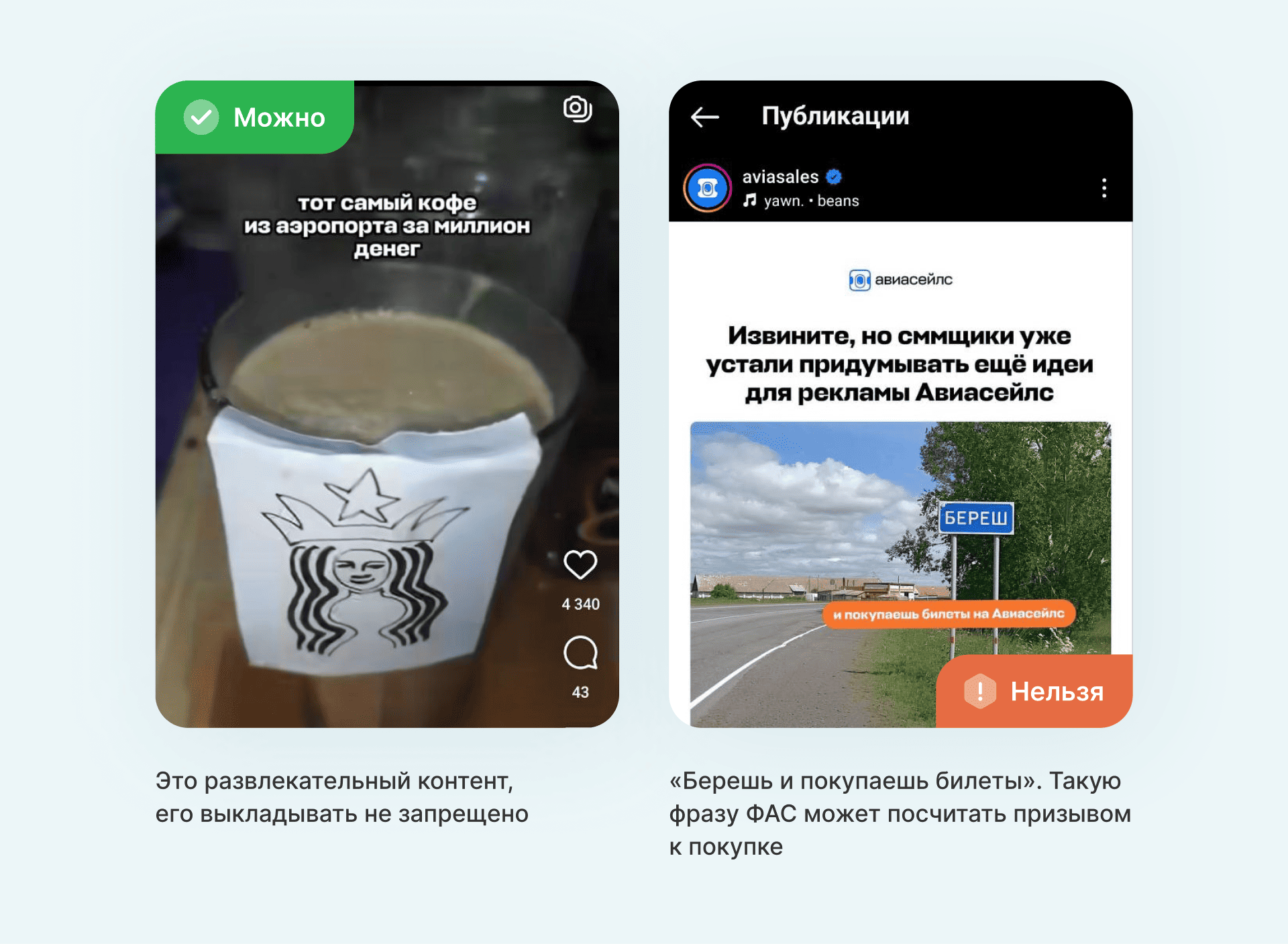 Что будет с 1 сентября. Предприниматели по-прежнему могут прогревать клиентов, но не должны призывать к покупке. Можно делиться информацией, писать полезные посты, делиться лайфстайлом, но нельзя оставлять ссылки на товар, писать цены, артикулы, призывы к действию.