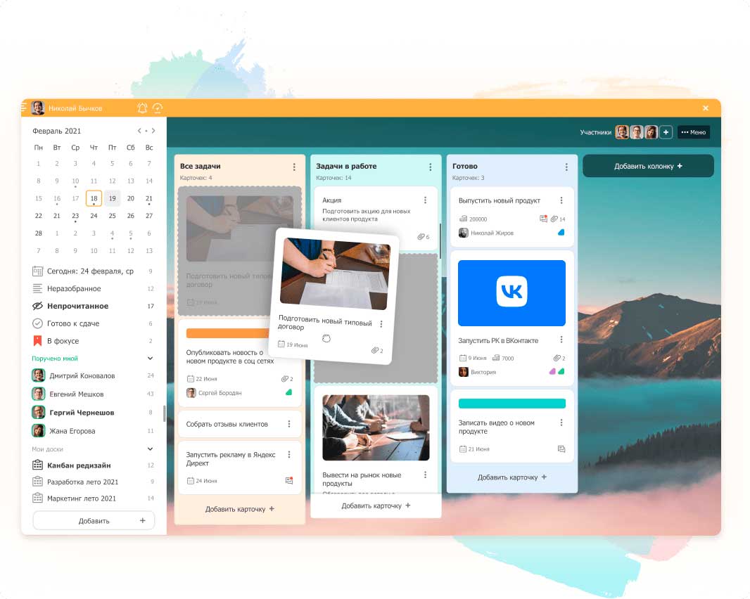 Так выглядит работа над проектом на канбан-доске. Источник: ЛидерТаск