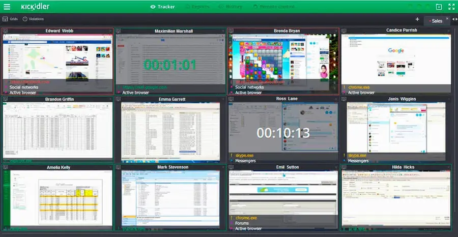 Запись рабочих столов сотрудников, сразу видно кто и чем занимается. Источник: Kickidler
