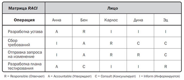 Для разграничения обязанностей есть удобный инструмент — матрица RACI. С ее помощью каждому сотруднику назначают роль в каждой задаче по проекту:
