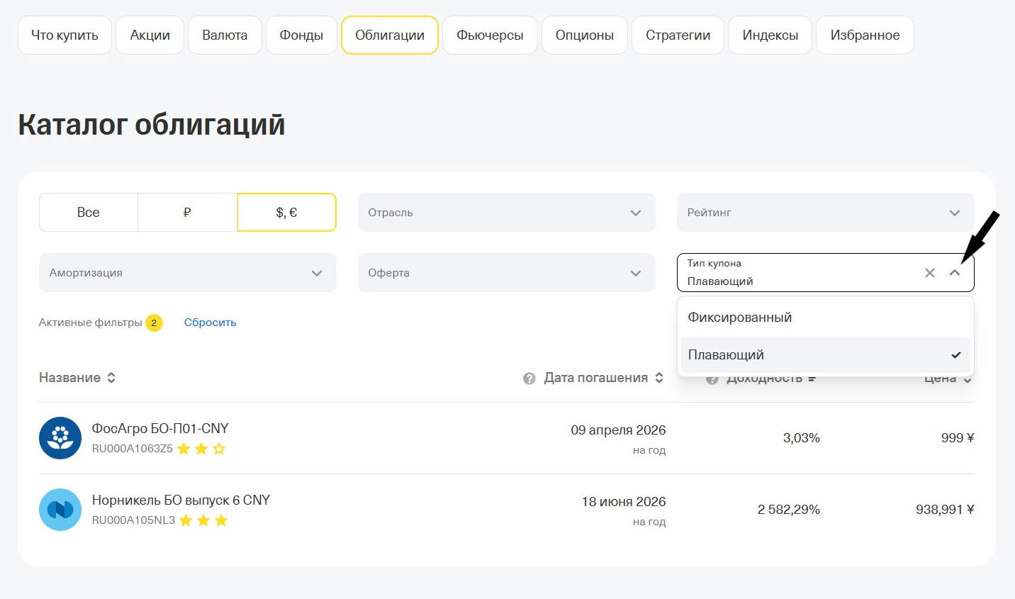 Найти флоатеры для покупки несложно. Для этого можно использовать фильтры поиска у брокера.