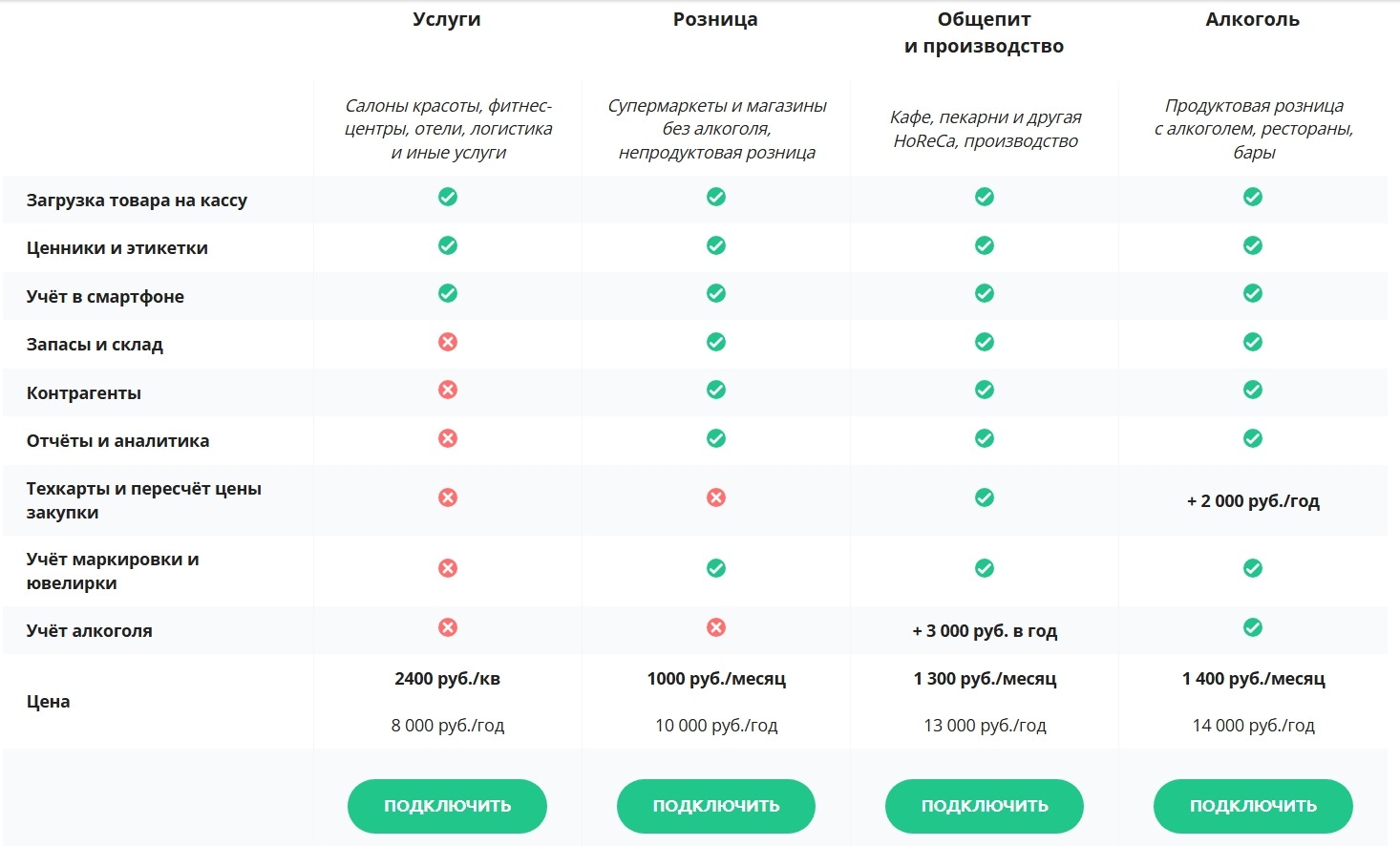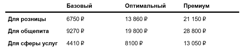 | 1C: Розница | от 1980 ₽ | ➕ | ➕ | ➕ | ➕ |