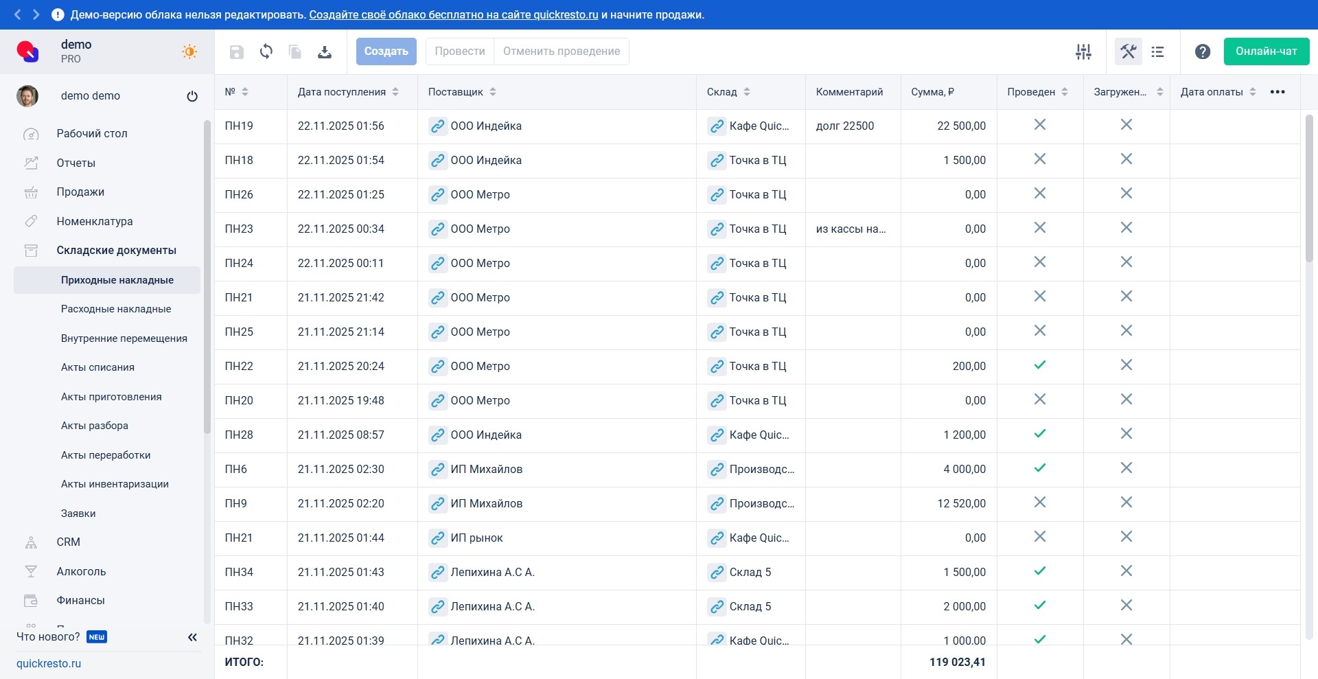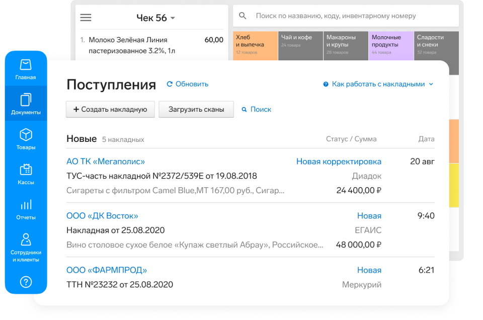 Складская программа оптимизирует операции с товаром: приёмку, перемещения, списания, продажи. В них считают остатки и планируют закупки, передают данные о маркированных товарах в госсистемы ЕГАИС, «Честный знак», «Меркурий».