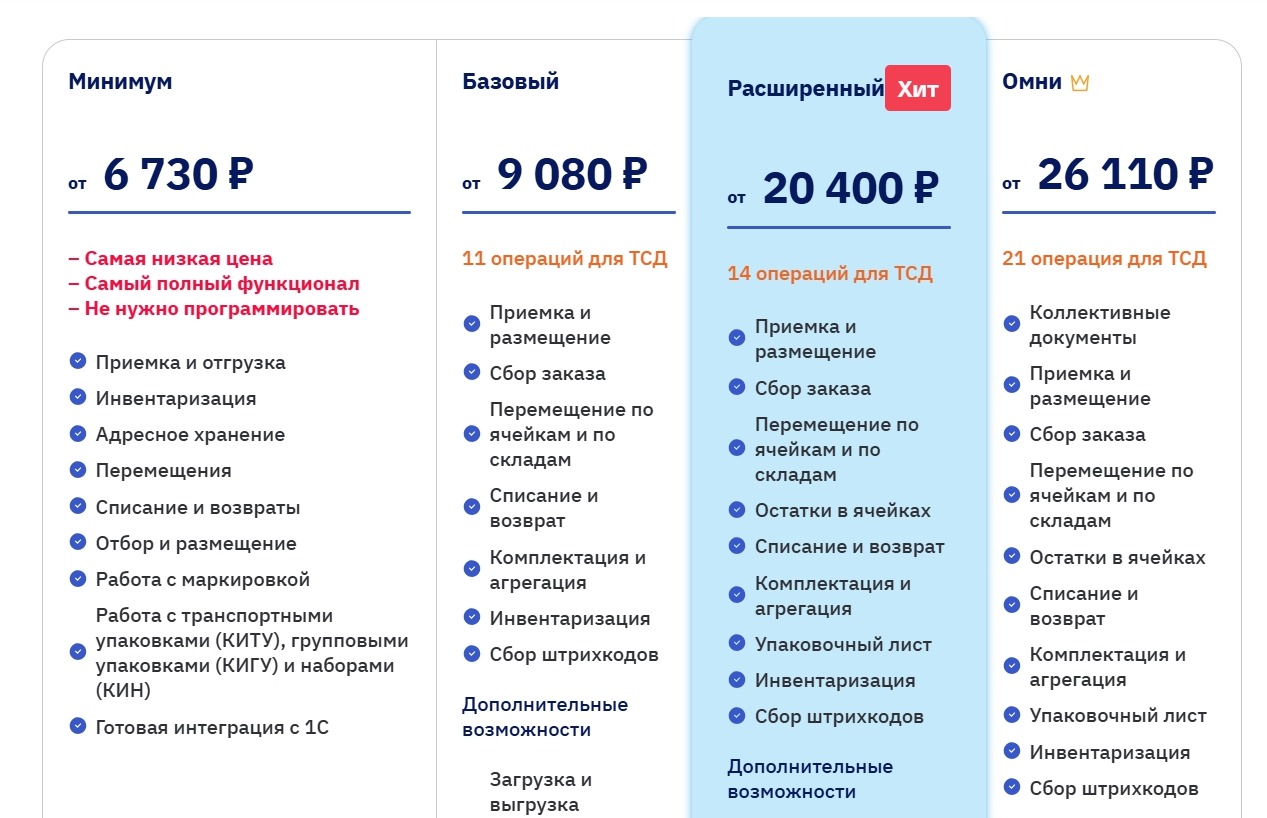 Чтобы выбрать подходящее решение для бизнеса, важно убедиться — в программе есть все нужные функции и интеграции. Мы решили упростить задачу. В таблице кратко сравниваем цены и возможности топа складских программ, а в следующих разделах подробно разбираем плюсы и минусы этих и других популярных решений.