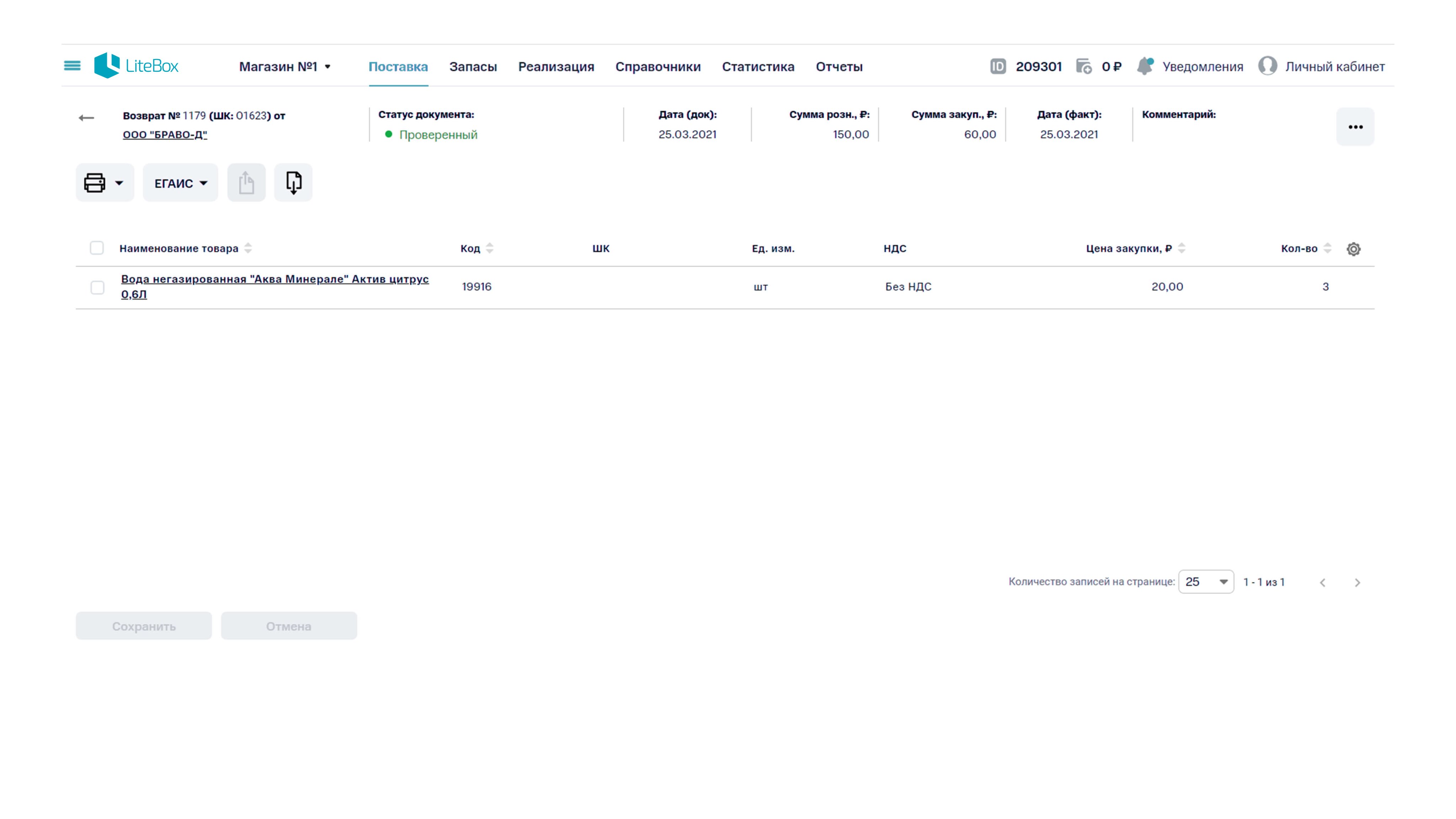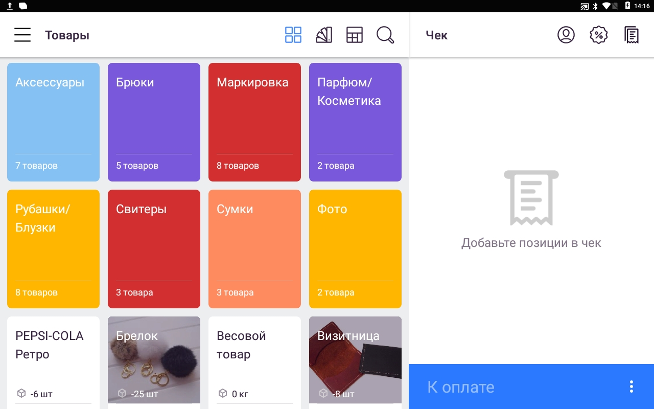 - Доступен учёт только штучных товаров.