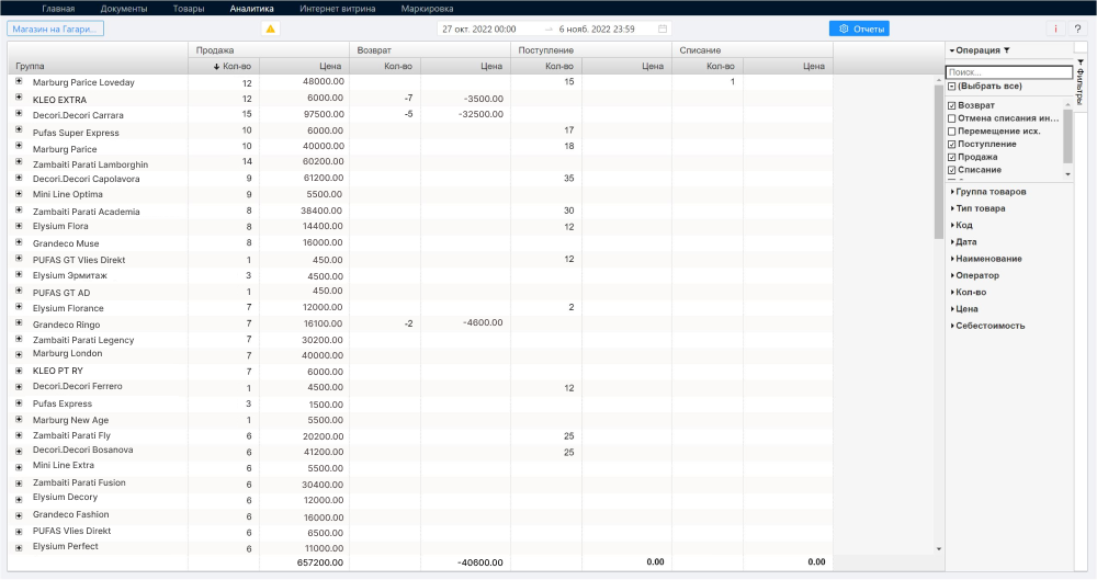 - Аналитика по товарам или продавцам для более эффективных продаж.