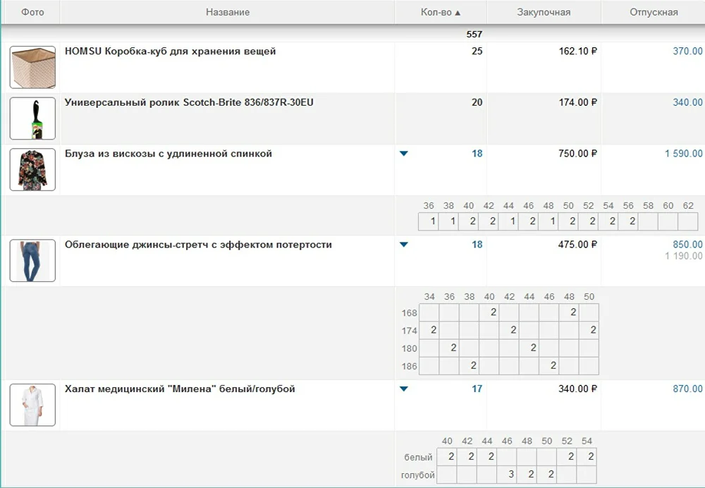 Сервис помогает понять, сколько товаров есть на складе, сколько нужно заказать, какие позиции самые ходовые. С помощью такой аналитики предприниматели сокращают расходы на закупку и не дают сотрудникам жульничать.