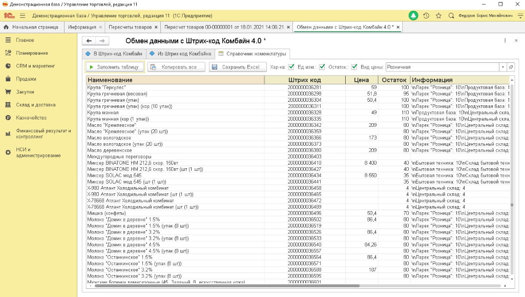- Есть модуль для печати ценников и штрихкодов.