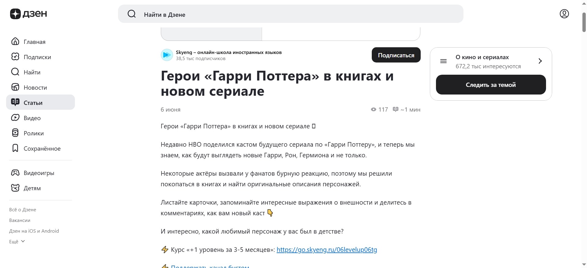 Превращать инфоповод в контент или рекламу. Просто поделиться новостями о событии недостаточно, нужно как-то связать это с компанией. В Skyeng не просто выпустили очередную статью о новом касте Гарри Поттера, а сделали из статьи обучалку по английскому языку.