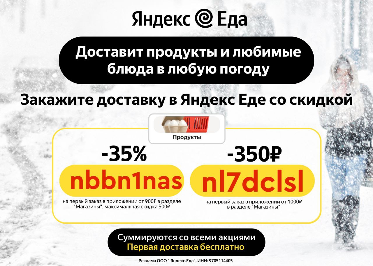 Реклама может быть эффективнее, если использовать инфоповоды. Например, Яндекс Еда в холодную погоду запускает рекламу о доставке вкусной горячей еды со скидками.