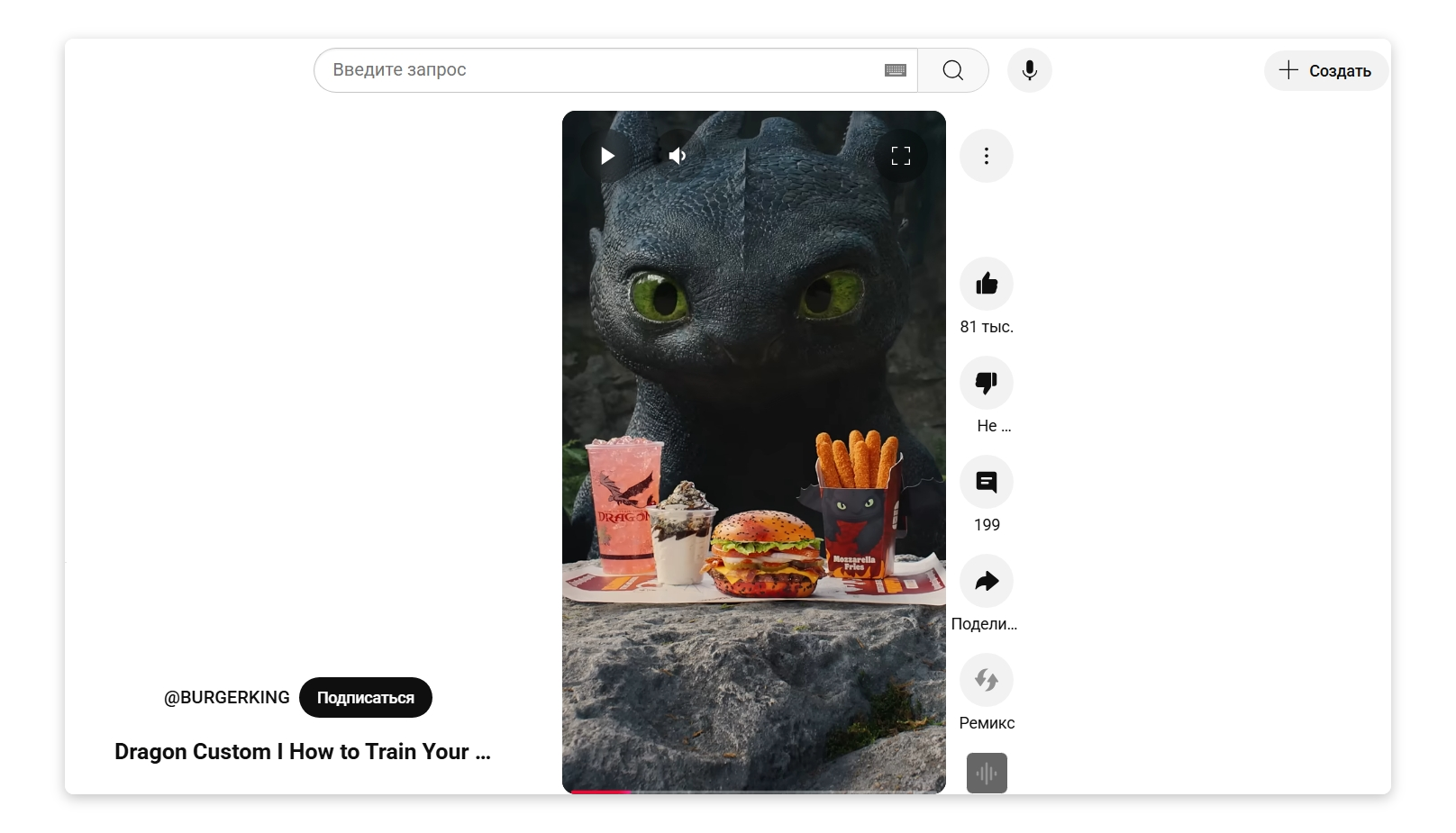 На Youtube-канале компания также стремится охватить инфоповоды. Например, Бургер Кинг выпустил ролик с драконом Беззубиком, приуроченный к дате выхода фильма «Как приручить дракона».