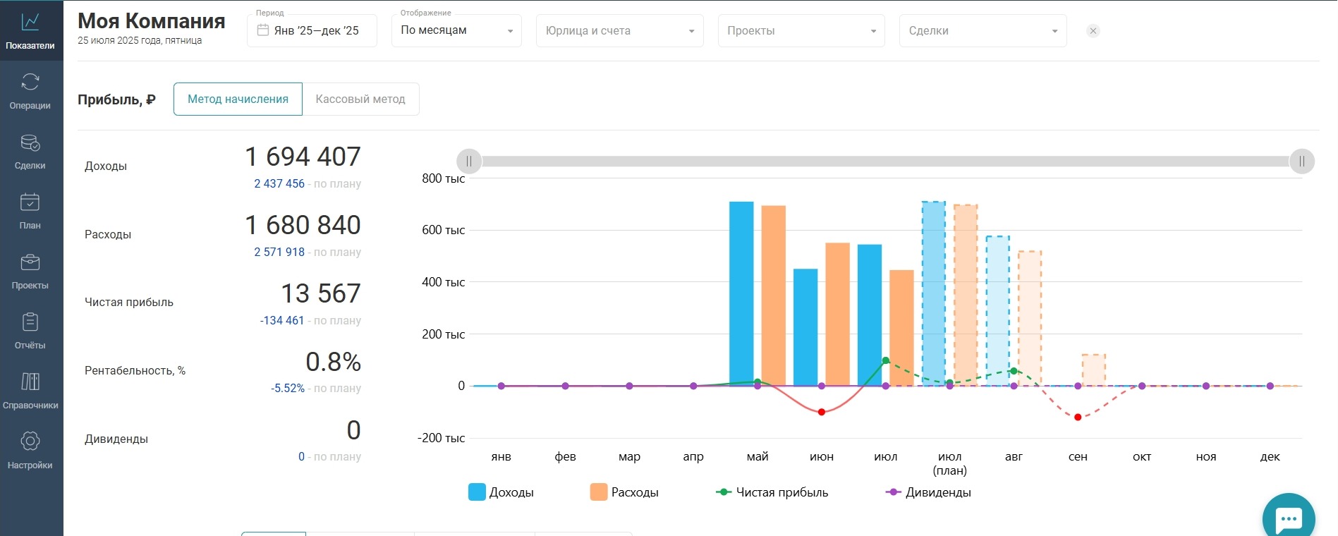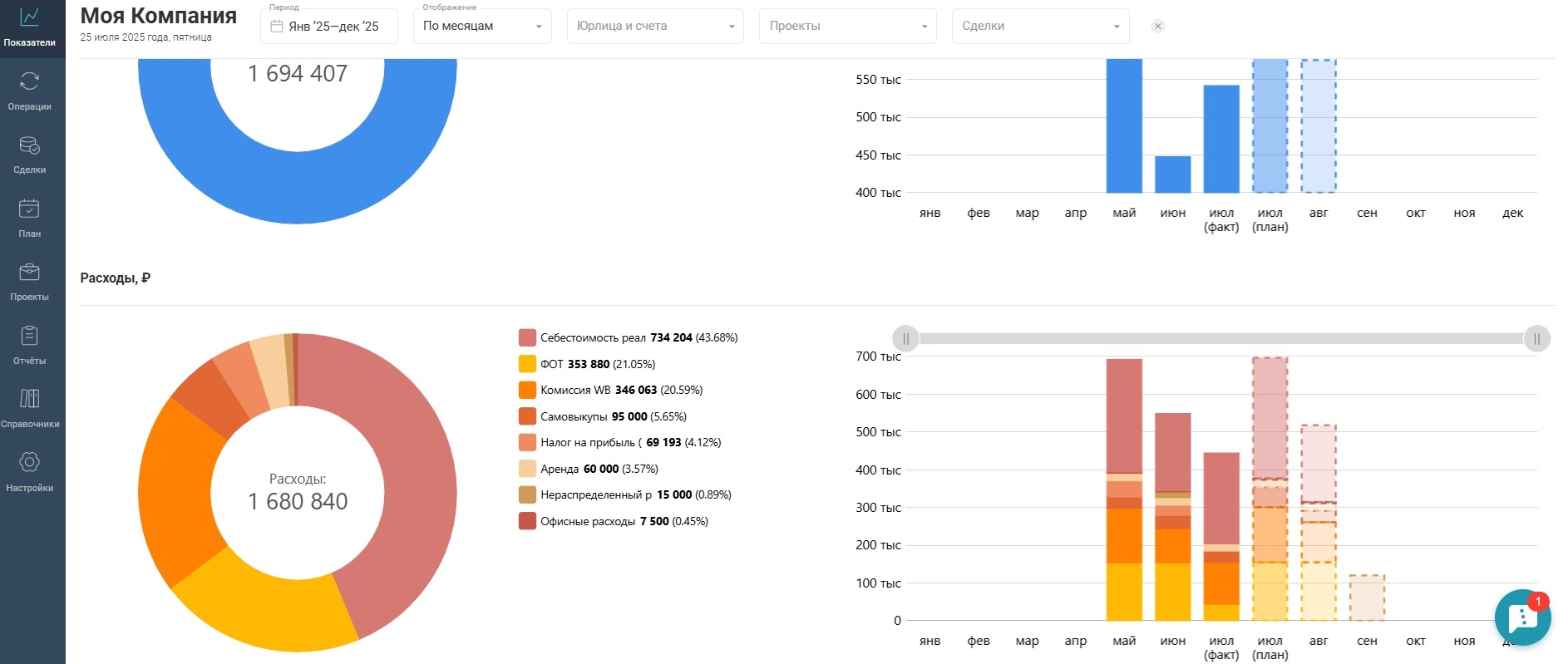Это можно делать с помощью встроенной аналитики. На маркетплейсах есть данные по продажам, оборачиваемости, конверсиях на разных этапах воронки продаж. Таких данных не всегда хватает, чтобы точно рассчитать чистую прибыль и расходы бизнеса. Для этих целей используют дополнительные инструменты. Например, в сервисе ПланФакт вы можете: