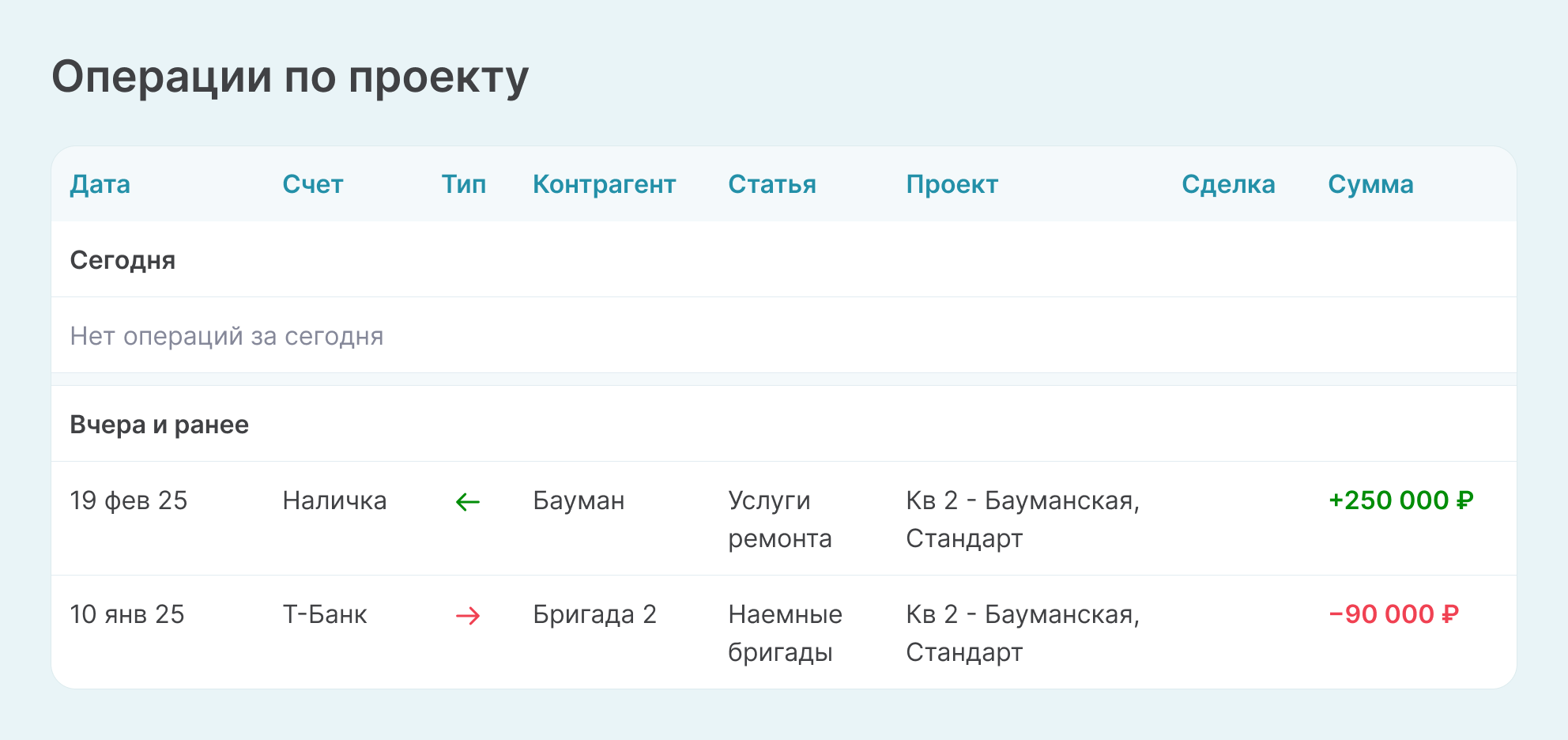Расходы на наемные бригады и зарплату сотрудникам разделены
