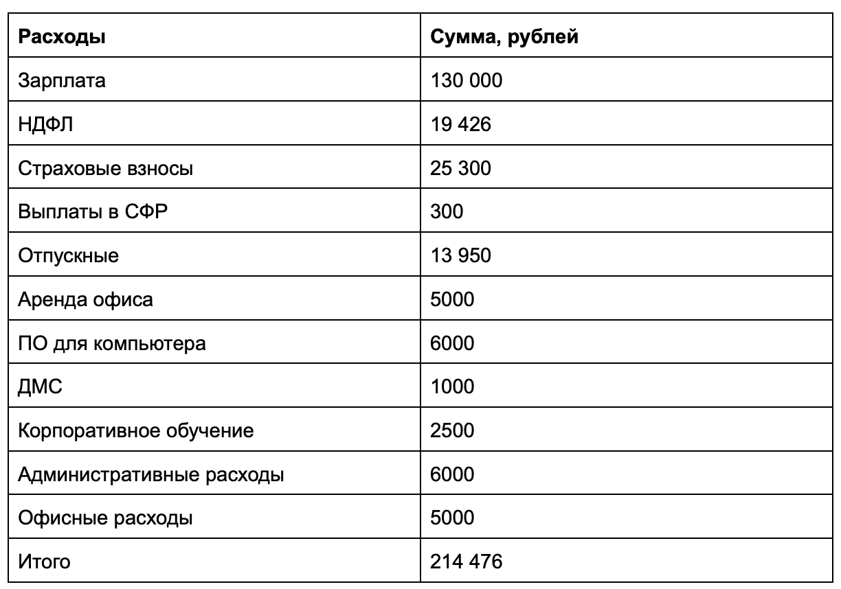 Чтобы рассчитать стоимость сотрудника, нужно узнать, сколько прямых и косвенных расходов тратит на него компания.