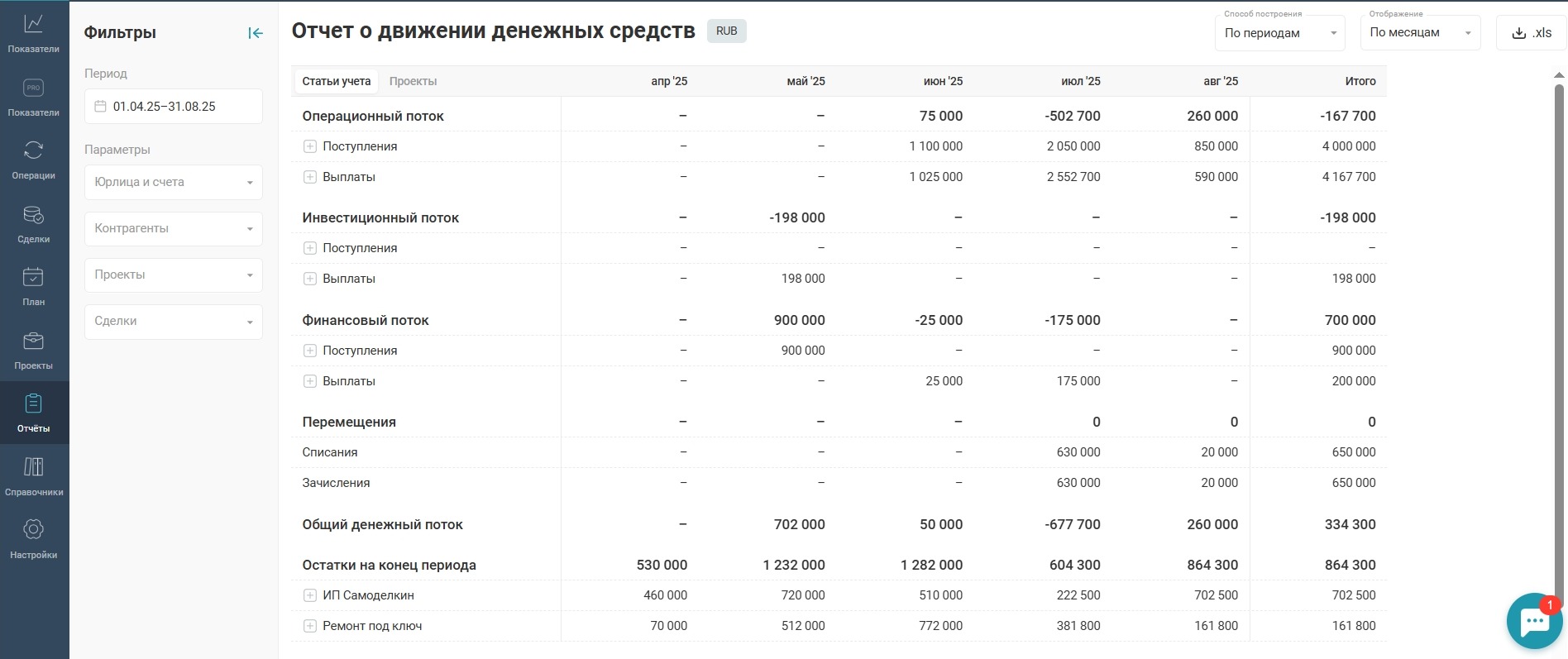 - ДДС. Отчет о движении денежных средств помогает увидеть, откуда приходят и куда уходят деньги, какие остатки есть на счетах, проанализировать движение денег по направлениям, заранее спрогнозировать кассовые разрывы.