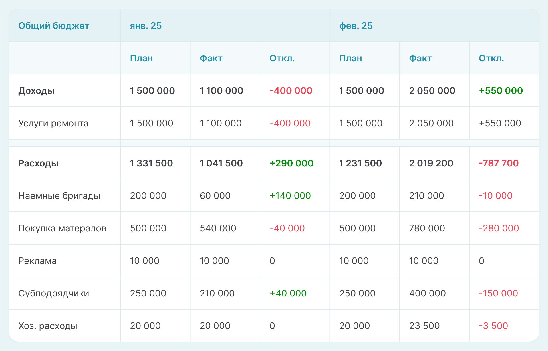 - Контроль целевого расходования бюджета и закладка бюджетной основы компании на будущий период.
