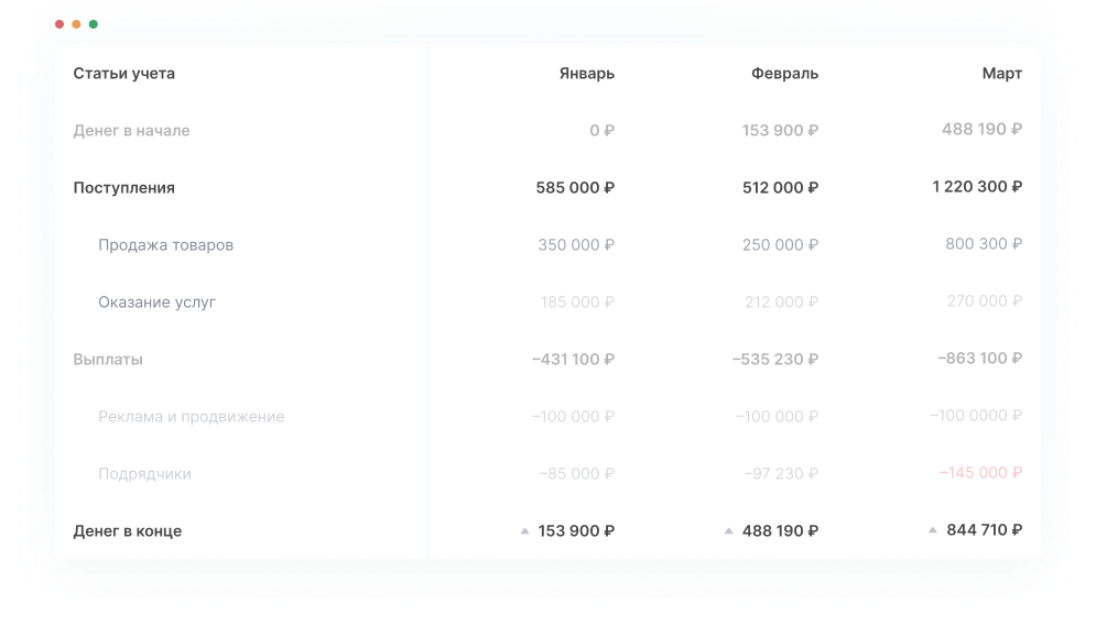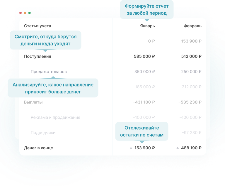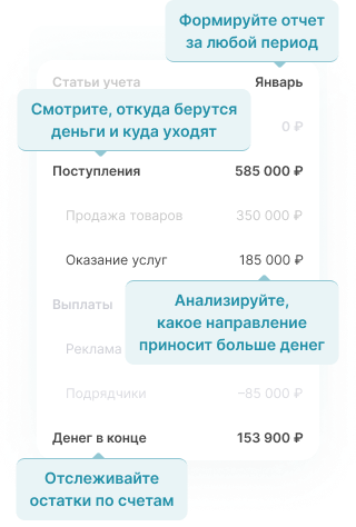 Они помогают сразу увидеть тренды, визуальное соотношение поступлений и выплат, как меняются остатки на счетах