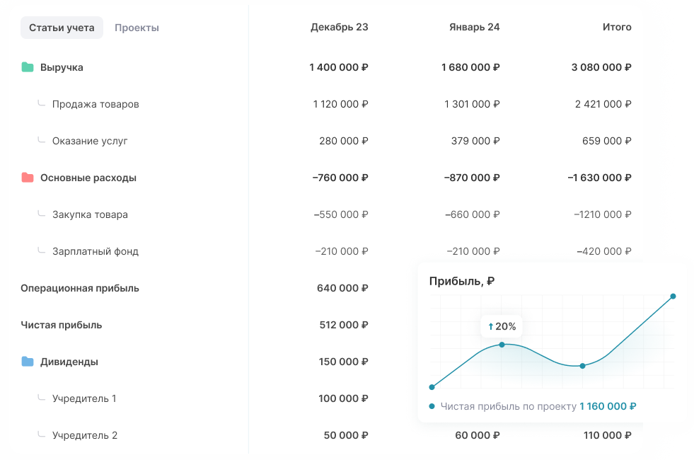 Составить отчет о прибылях